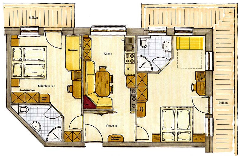 Wohnung 1: ca. 68m² (4-7 Pers.)